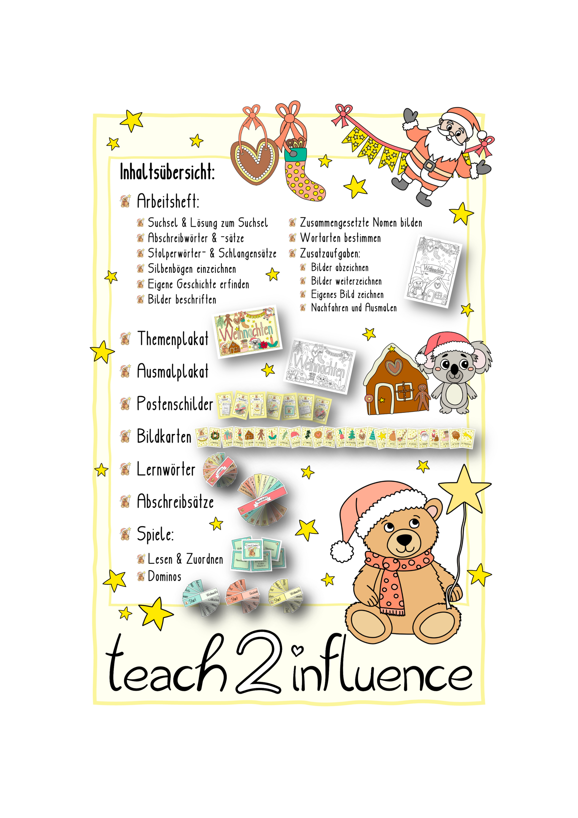Die "Weihnachtswerkstatt" für die 3. und 4. Klasse soll die Kinder auf vielfältige und motivierende Weise zum Lernen anregen. Die Werkstatt enthält nicht nur abwechslungsreiche und spielerische Lernmaterialien, sondern dient zugleich auch als inspirierende Themenecke im Klassenzimmer.